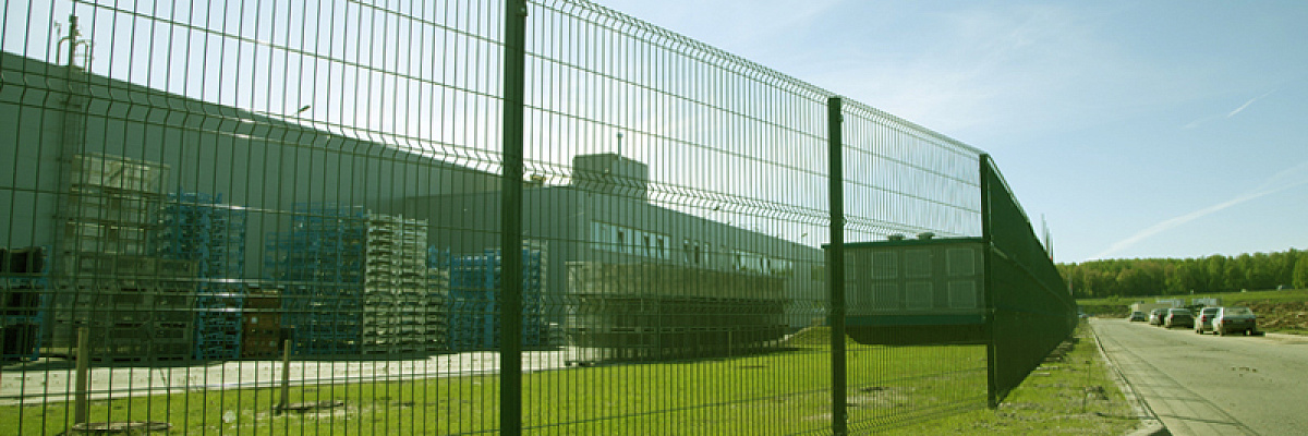 Ограждение для аэропорта состоит из секций с объемными V-образными изгибами. Они выполняют роль ребер жесткости и предотвращают деформацию при нагрузках. 3D-панели легко монтируются на столбы, обеспечивая стабильность всей линии забора.